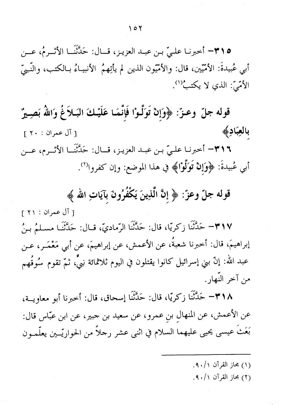 316 - أَخْبَرَنَا علي بْن عَبْد العزيز، قَالَ: حَدَّثَنَا الأثرم، عَنْ أبي عبيدة: {وَإِنْ تَوَلَّوْا} ، فِي هَذَا الموضع: وإن كفروا