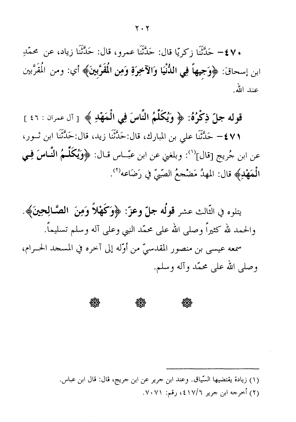 470 - حَدَّثَنَا زَكَرِيَّا، قَالَ: حَدَّثَنَا عمرو، قَالَ: حَدَّثَنَا زياد، عَنْ محمد بْن إِسْحَاق: {وَجِيهًا فِي الدُّنْيَا وَالآخِرَةِ وَمِنَ الْمُقَرَّبِينَ} أي " ومن المقربين عِنْد اللهِ