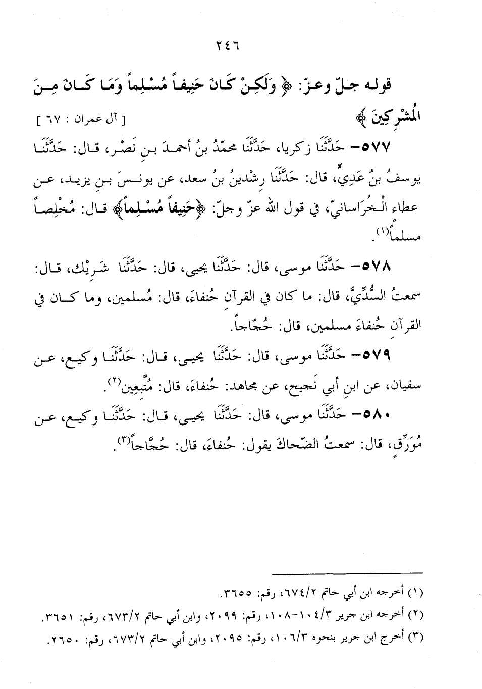 579 - حَدَّثَنَا موسى، قَالَ: حَدَّثَنَا يَحْيَى، قَالَ: حَدَّثَنَا وكيع، عَنْ سفيان، عَنْ ابْن أبي نجيح، عَنْ مجاهد، حنفاء، قَالَ " متبعين "