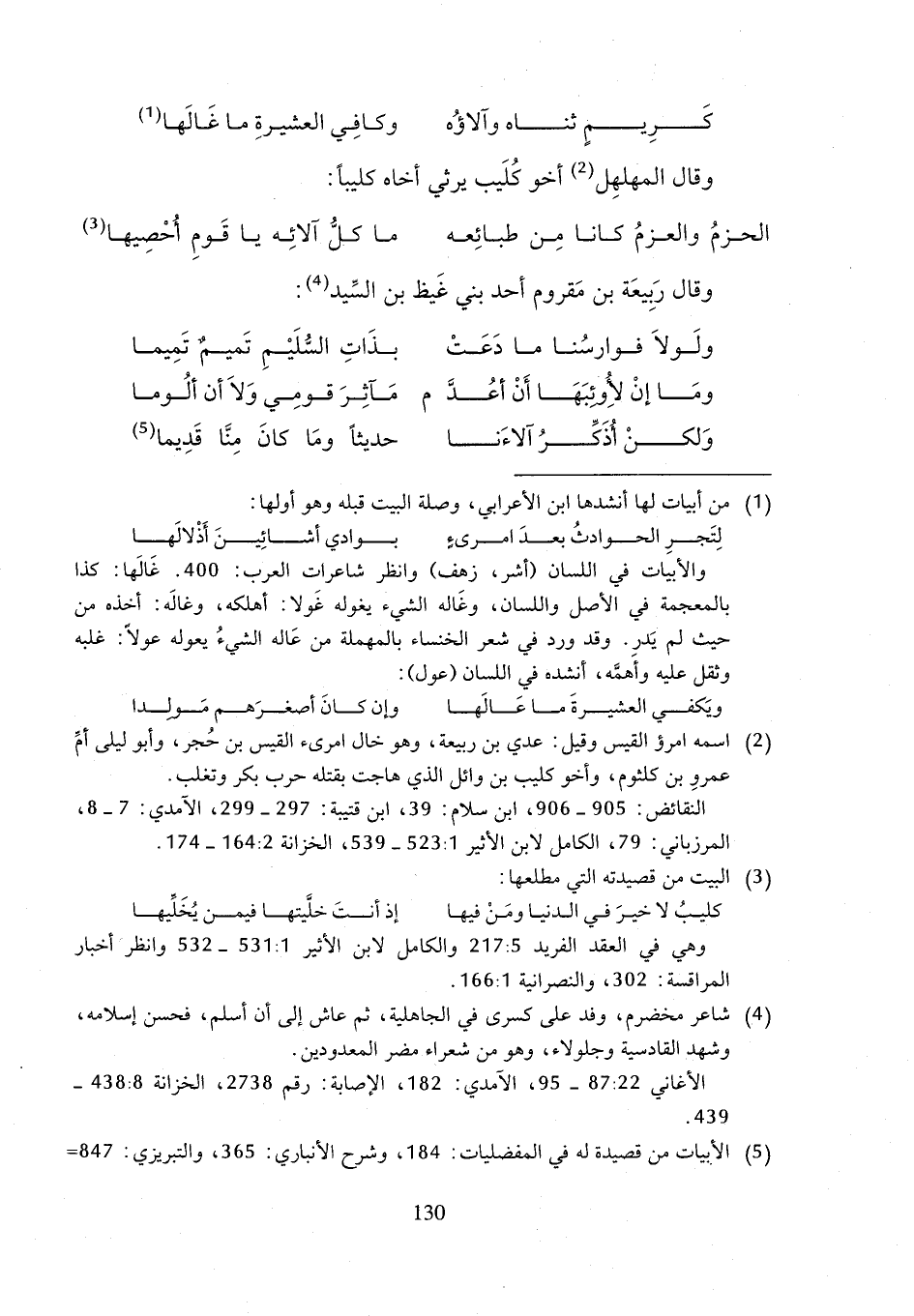 (¬5) الأبيات من قصيدة له في المفضليات: 184، وشرح الأنباري: 365، والتبريزي: 847 =