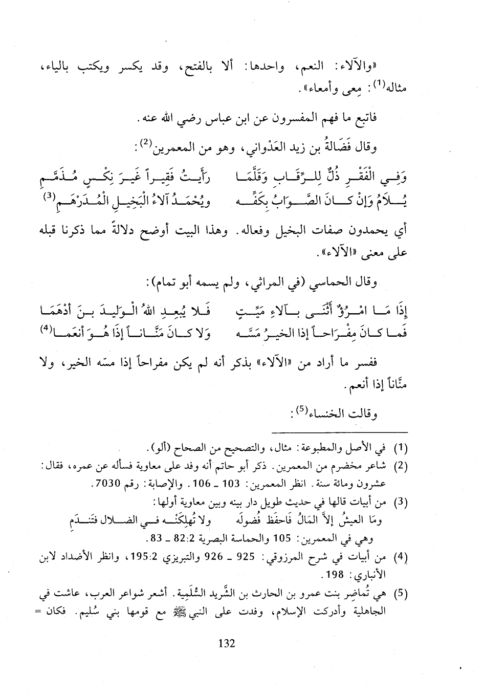 أي يحمدون صفات البخيل وفعاله. وهذا البيت أوضح دلالة مما ذكرنا قبله على معنى "الآلاء".