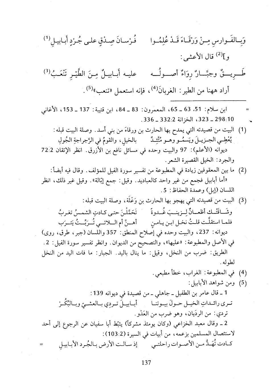 وَبِالفَوارسِ مِنْ وَرْقَاءَ قَدْ عُلِمُوا ... فُرْسانَ صِدْقٍ على جُرْدٍ أَبابيلِ (¬1)