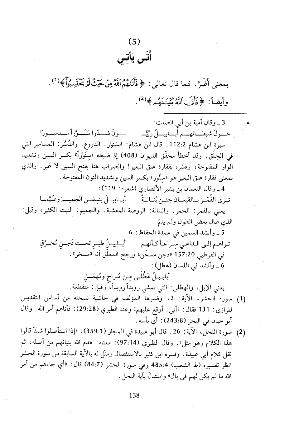(¬1) سورة الحشر، الآية: 2، وفسرها المؤلف في حاشية نسخته من أساس التقديس للرازي: 131 فقال: "أتى: أوقع عليهم" وعند الطبري (28: 29): فأتاهم أمر الله. وقال أبو حيان في البحر (243:8): أي بأسه.