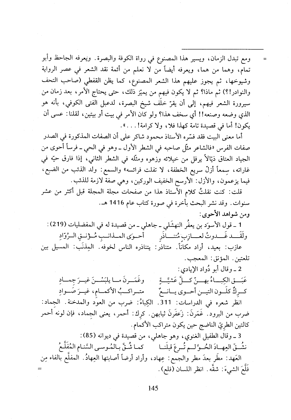 قلت: كنت نقلتُ كلام الأستاذ هذا من صفحات مجلة المجلة قبل أكثر من عشر سنوات. وقد نشر البحث بأخرة في صورة كتاب عام 1416 هـ.