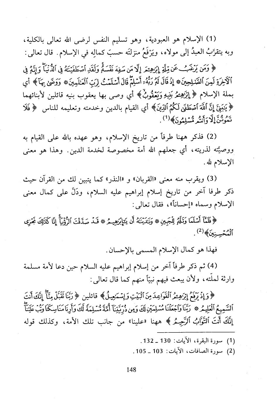 (2) فذكر هاهنا طرفاً من تاريخ الإسلام، وهو عهده بالله على القيام به ووصيَّته لذريته، أي جعلهم الله أمة مخصوصة لخدمة الدين. وهذا هو معنى الإسلام لله.