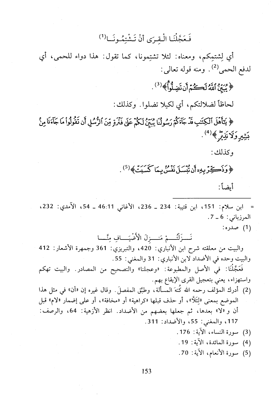 (¬2) أدرك المؤلف رحمه الله كُنهَ المسألة، وطبَّق المفصلَ. وقال غيره إن "أن" في مثل هذا الموضع بمعنى "لِئَلاَّ"، أو حذف قبلها "كراهية" أو "مخافة"، أو على إضمار "لام" قبل أن و "لا" بعدها، ثم جعلها بعضهم من الأضداد. انظر الأزهية: 64، والرصف: 117، والمغني: 55، والأضداد: 311.