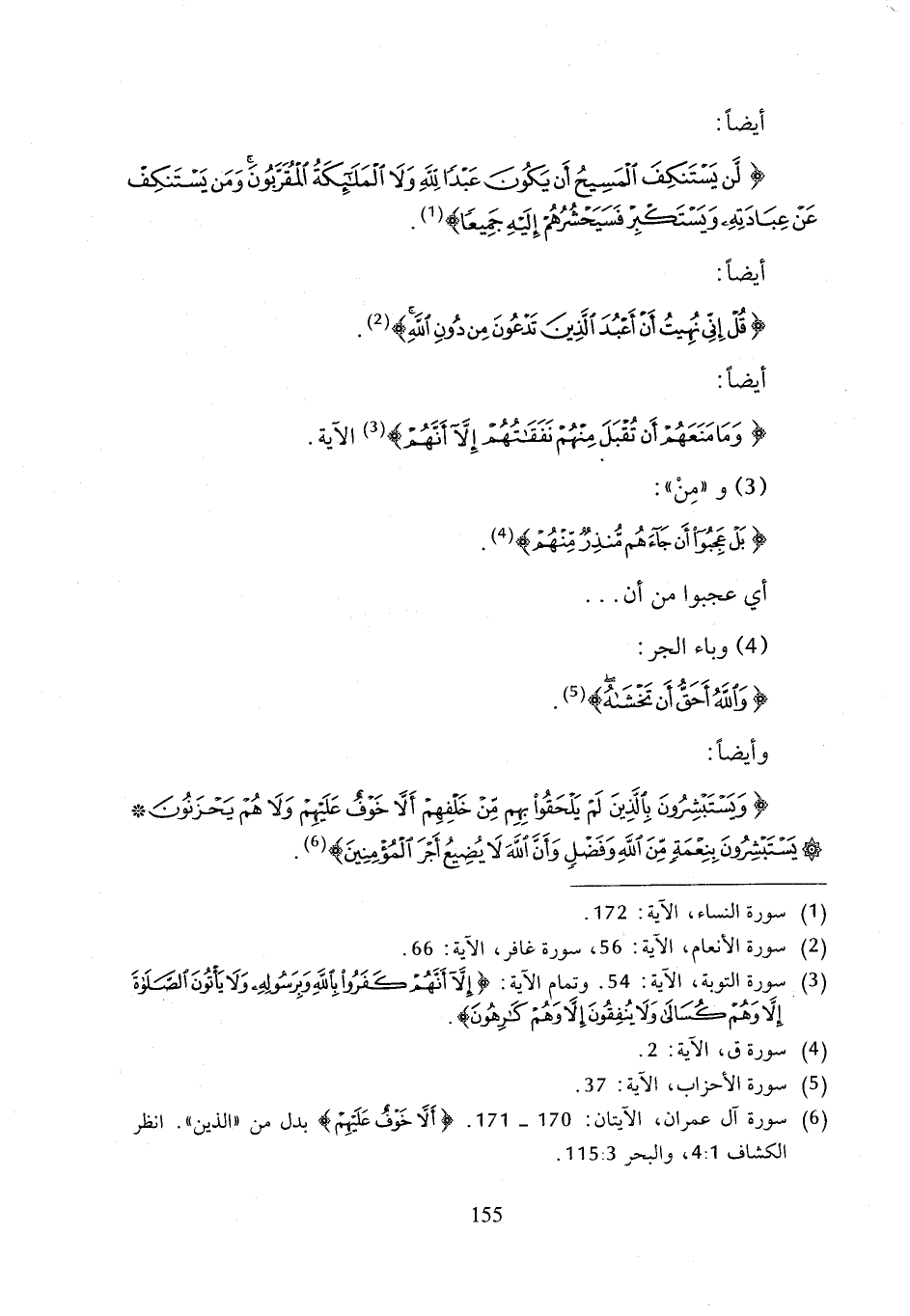 (¬6) سورة آل عمران، الآيتان: 170 - 171. {ألاَّ خوفٌ عليهم} بدل من "الذين". انظر الكشاف 1: 4، والبحر 3: 115.