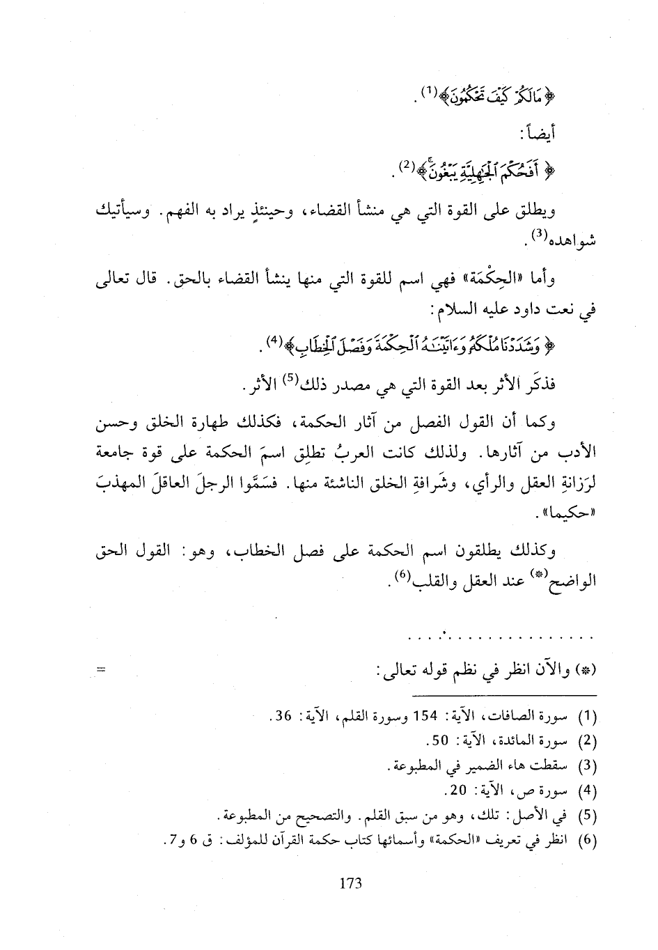 (¬6) انظر في تعريف "الحكمة" وأسمائها كتاب حكمة القرآن للمؤلف: ق 6 و7.