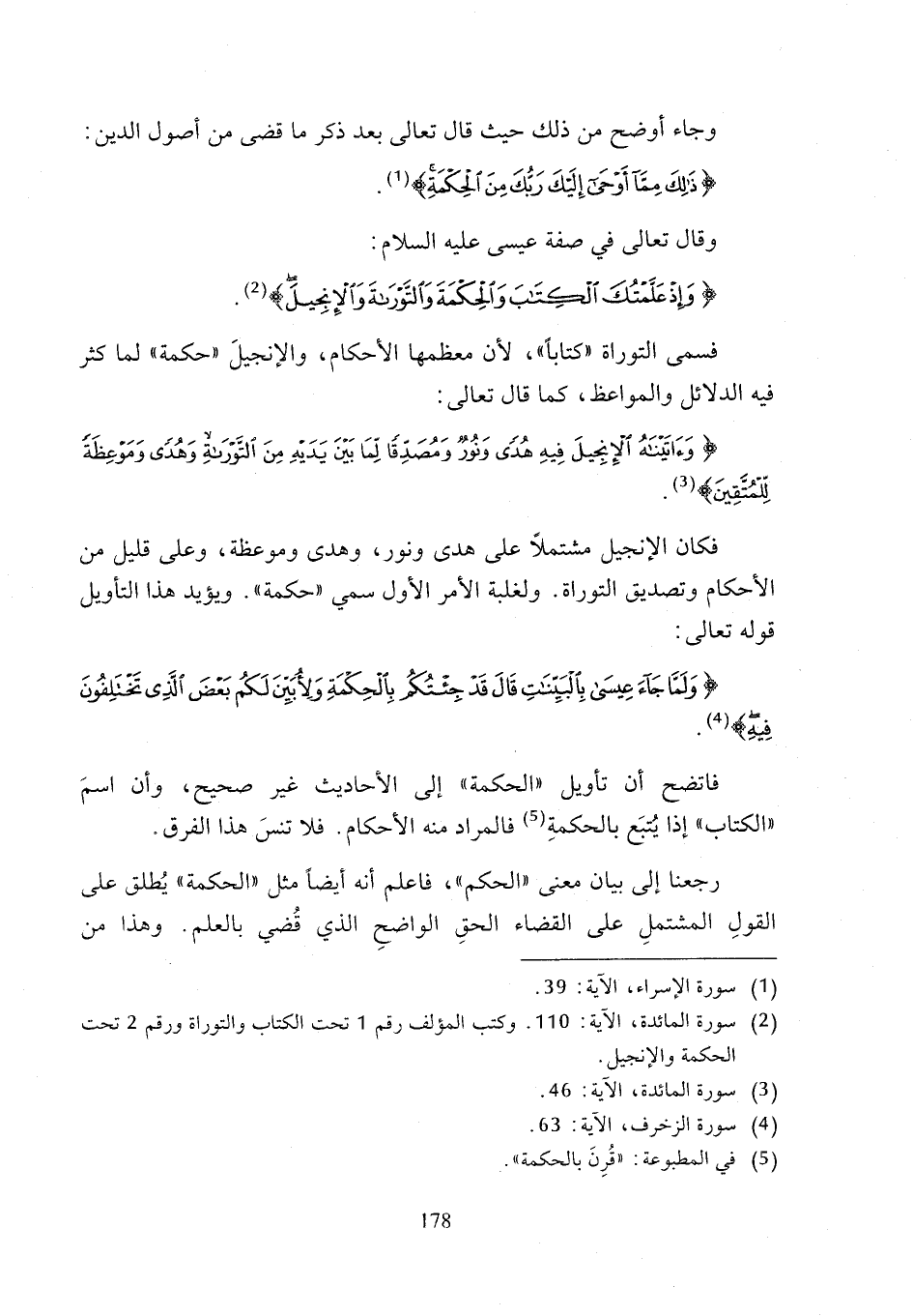 (¬2) سورة المائدة، الآية: 115. وكتب المؤلف رقم 1 تحت الكتاب والتوراة ورقم 2 تحت الحكمة والإنجيل.