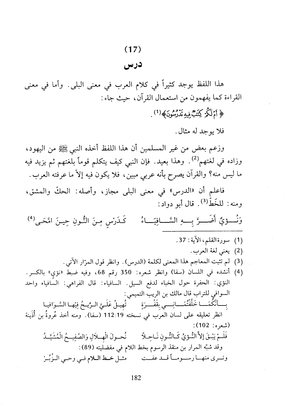 (¬3) لم تثبت المعاجم هذا المعنى لكلمة (الدرس). وانظر قول المرّار الآتي.