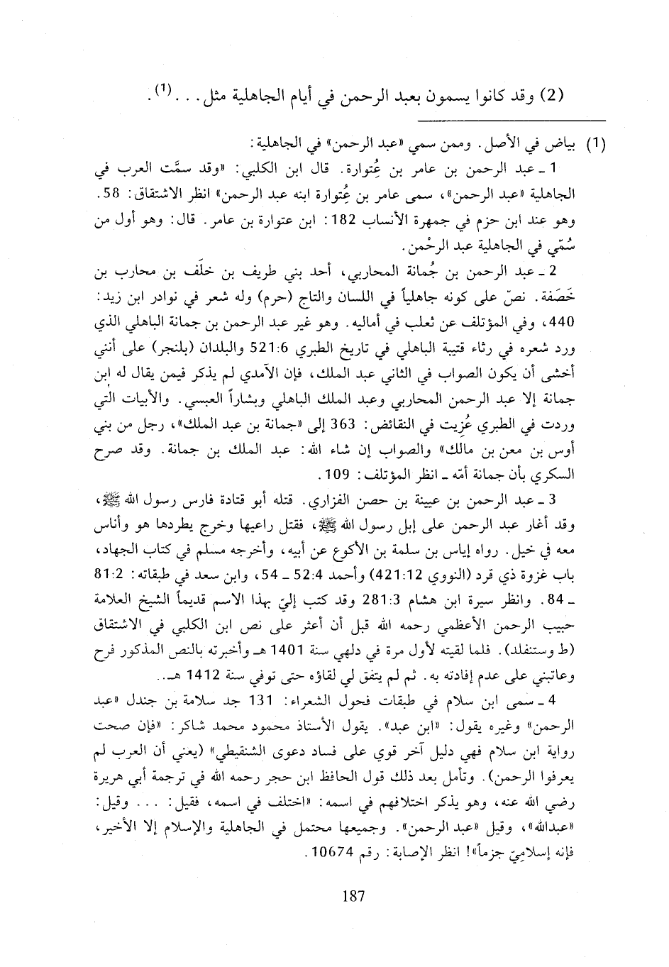 (2) وقد كانوا يسمون بعبد الرحمن في أيام الجاهلية مثل ... (¬1).