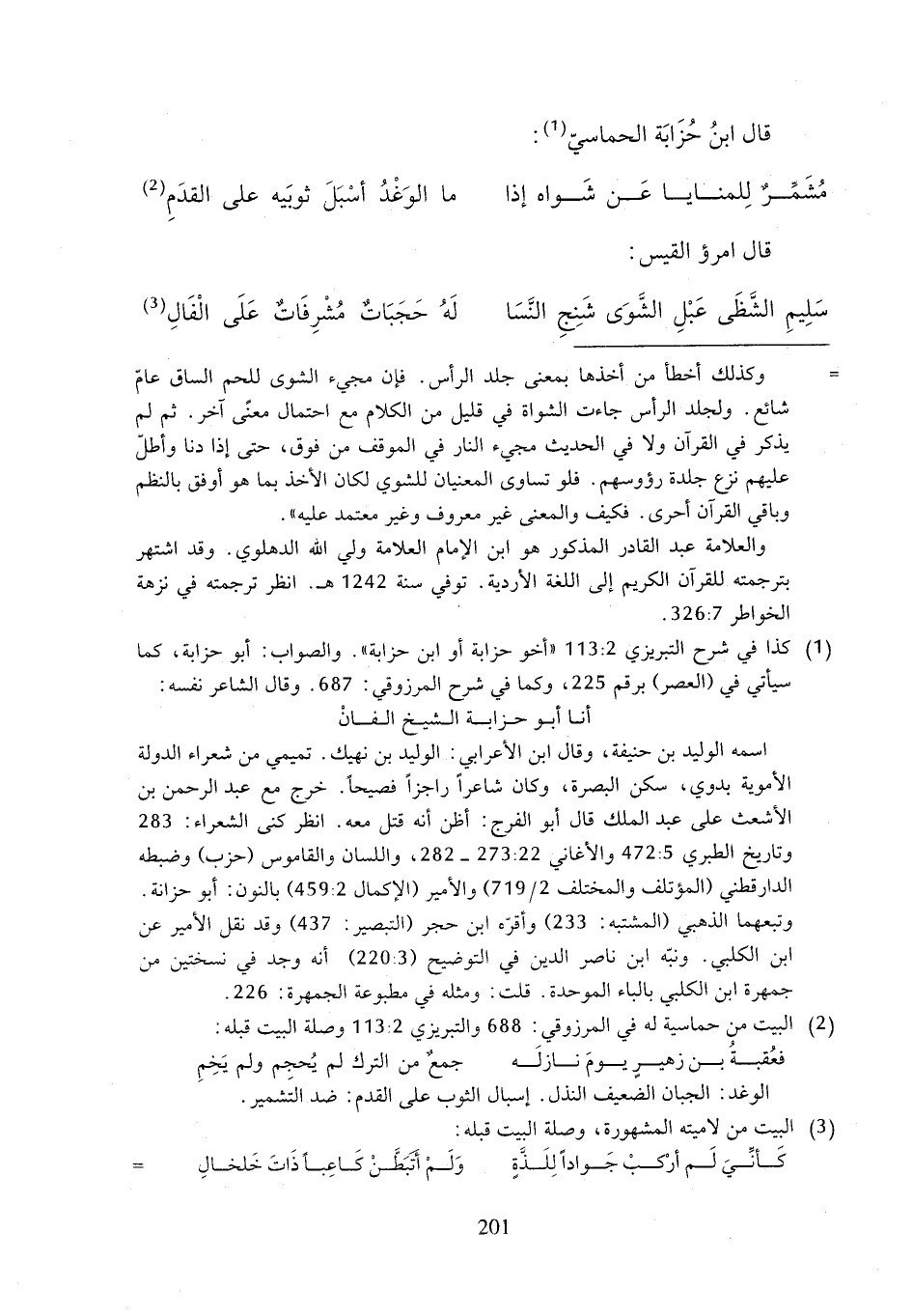 (¬1) كذا في شرح التبريزي 2: 113 "أخو حزابة أو ابن حزابة". والصواب: أبو حزابة، كما سيأتي في (العصر) برقم 225، وكما في شرح المرزوقي: 687. وقال الشاعر نفسه: