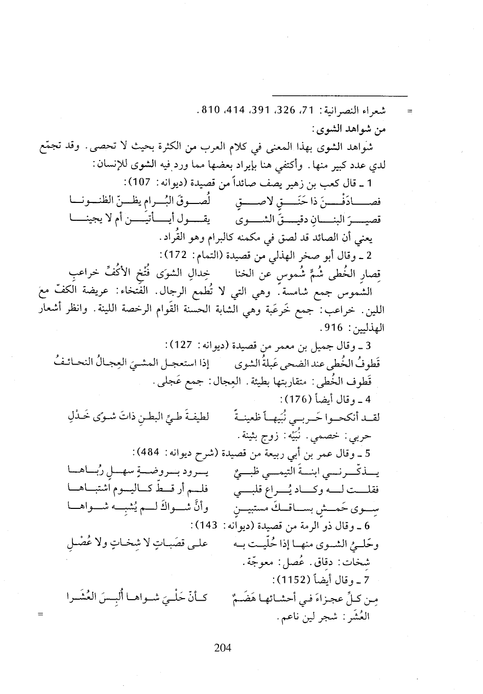 شواهد الشوى بهذا المعنى في كلام العرب من الكثرة بحيث لا تحصى. وقد تجمّع لدي عدد كبير منها. وأكتفي هنا بإيراد بعضها مما ورد فيه الشوى للإنسان:
