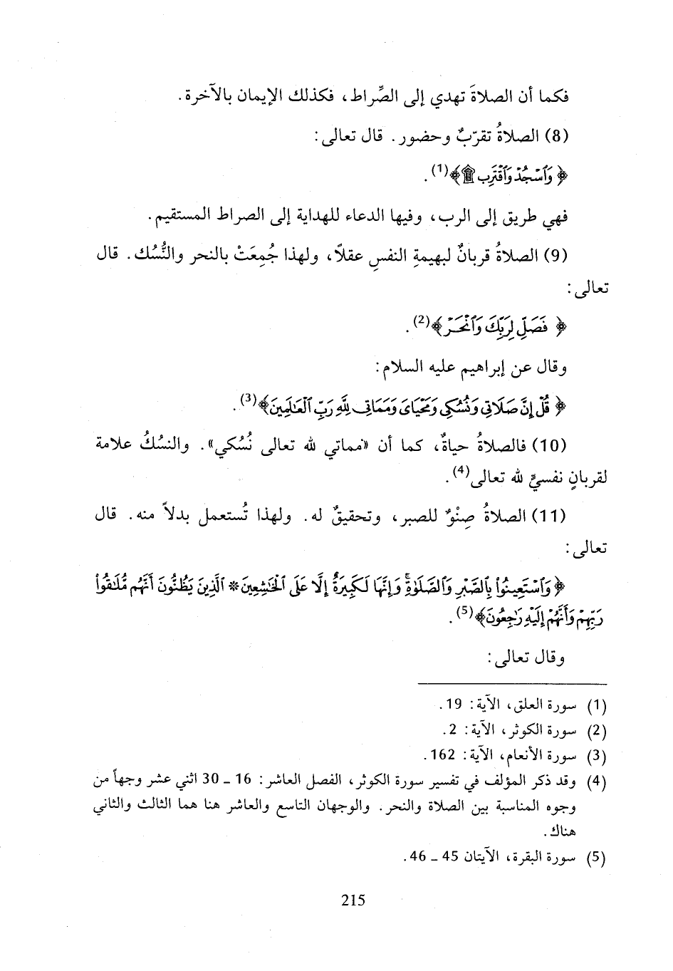 (¬4) وقد ذكر المؤلف في تفسير سورة الكوثر، الفصل العاشر: 16 - 30 اثني عشر وجهاً من وجوه المناسبة بين الصلاة والنحر. والوجهان التاسع والعاشر هنا هما الثاك والثاني هناك.