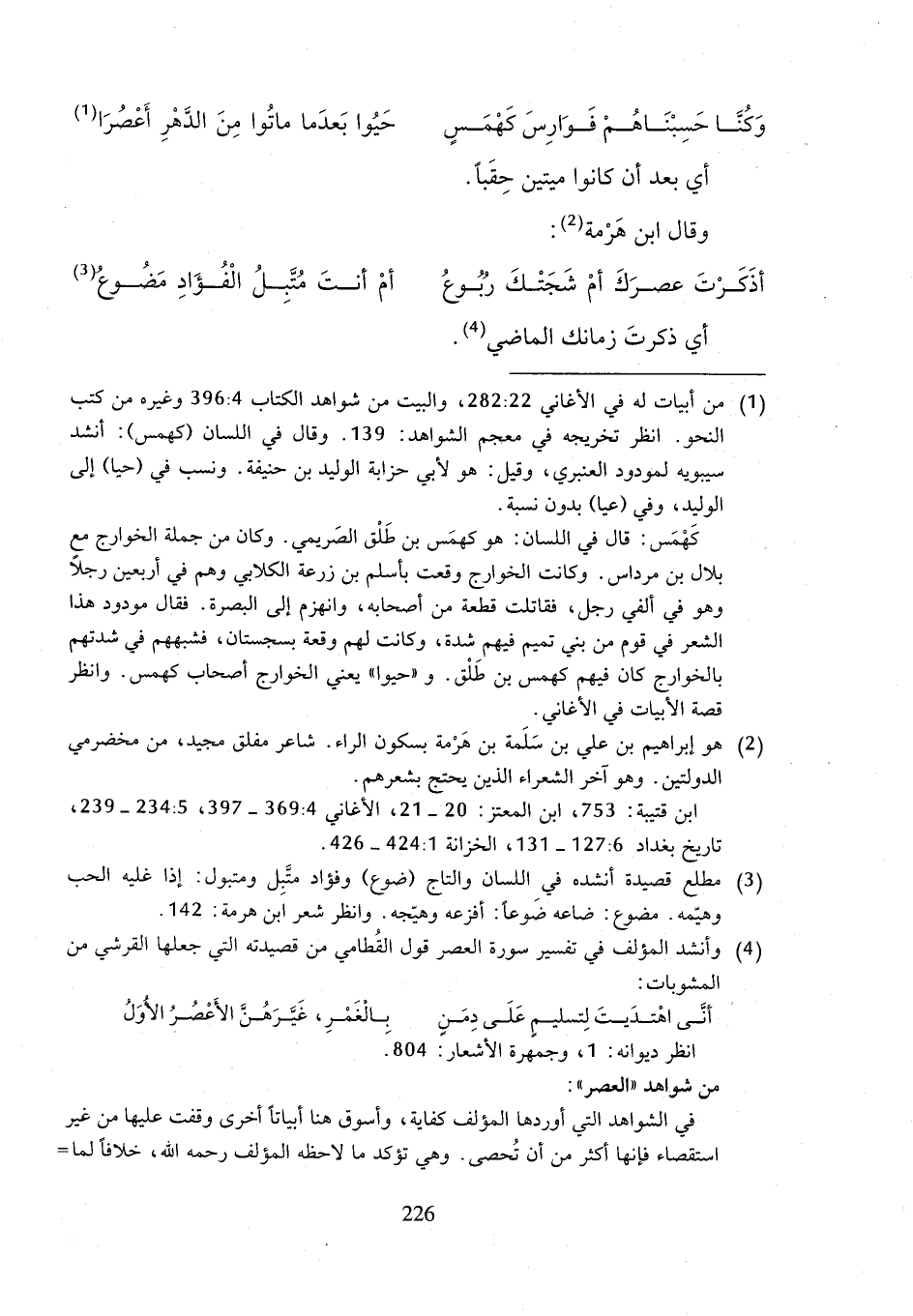 (¬4) وأنشد المؤلف في تفسير سورة العصر قول القُطامي من قصيدته التي جعلها القرشي من المشوبات: