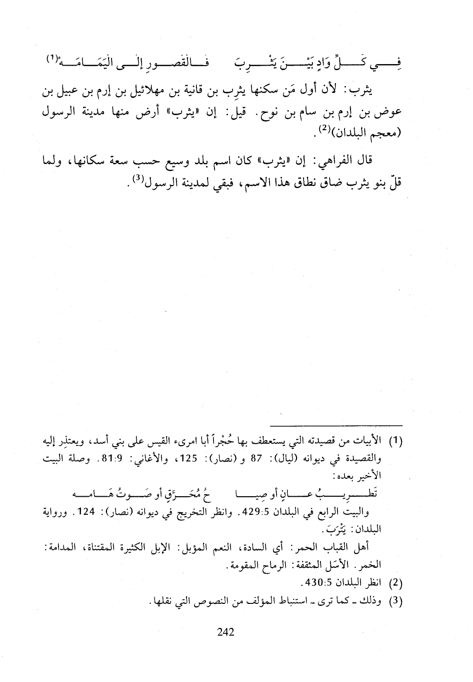 والبيت الرابع في البلدان 5: 429. وانظر التخريج في ديوانه (نصار): 124. ورواية البلدان: يَتْرَبَ.
