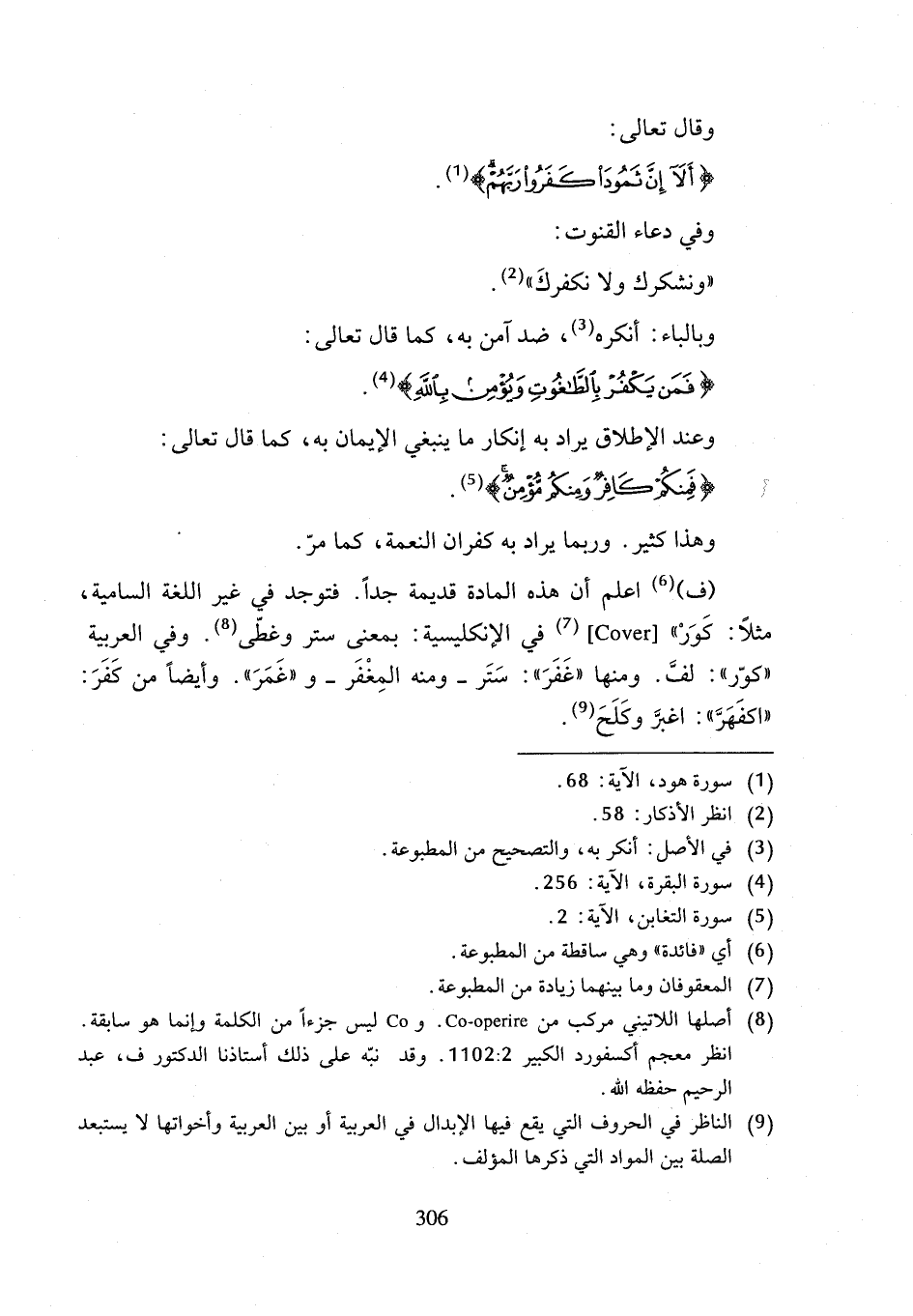 (¬8) أصلها اللاتيني مركب co-oprire و co ليس جزءاً من الكلمة وإنما هو سابقة. انظر معجم أكسفورد الكبير 2: 1102. وقد نبّه على ذلك أستاذنا الدكتور ف، عبد الرحيم حفظه الله.
