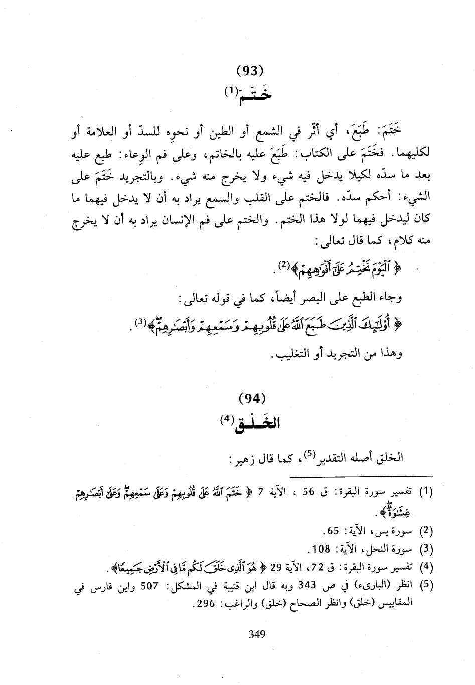 (¬5) انظر (البارئ) في ص 343 وبه قال ابن قتيبة في المشكل: 507 وابن فارس في المقاييس (خلق) وانظر الصحاح (خلق) والراغب: 296.