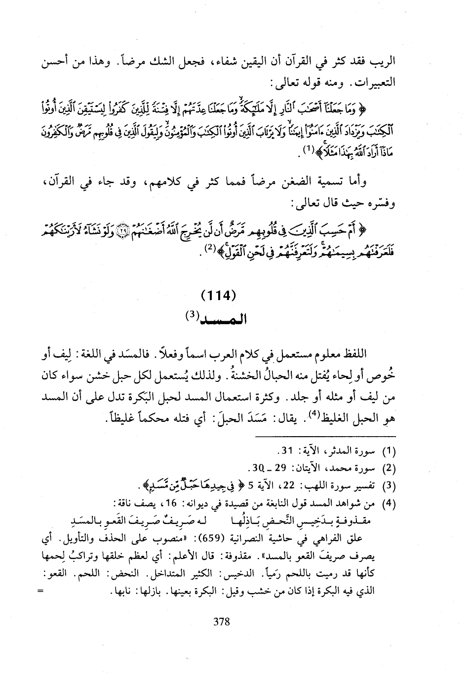 وأما تسمية الضغن مرضاً فمما كثر في كلامهم، وقد جاء في القرآن، وفسّره حيث قال تعالى: