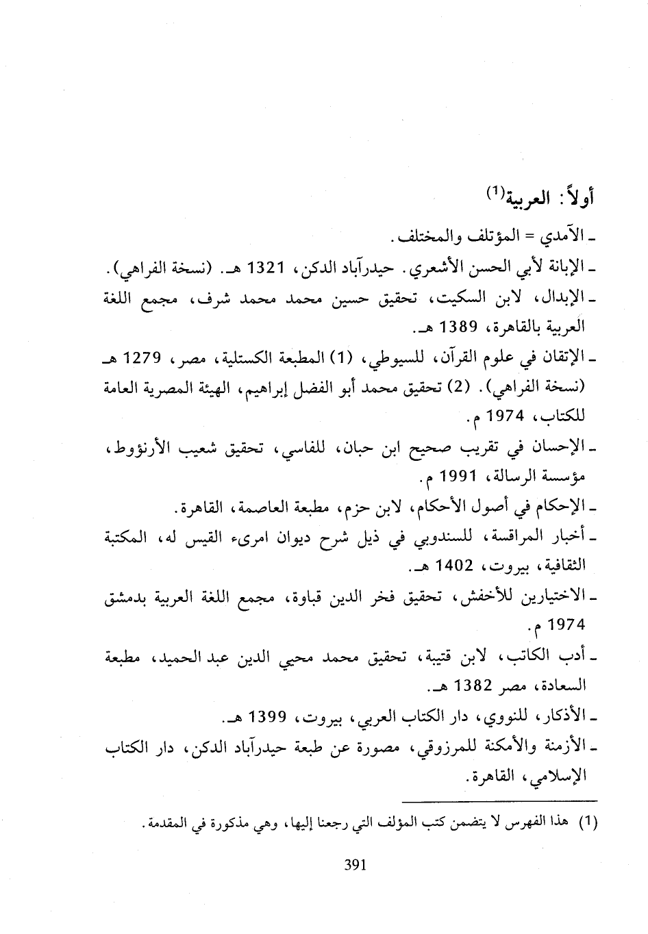 (¬1) هذا الفهرس لا يتضمن كتب المؤلف التي رجعنا إليها، وهي مذكورة في المقدمة.