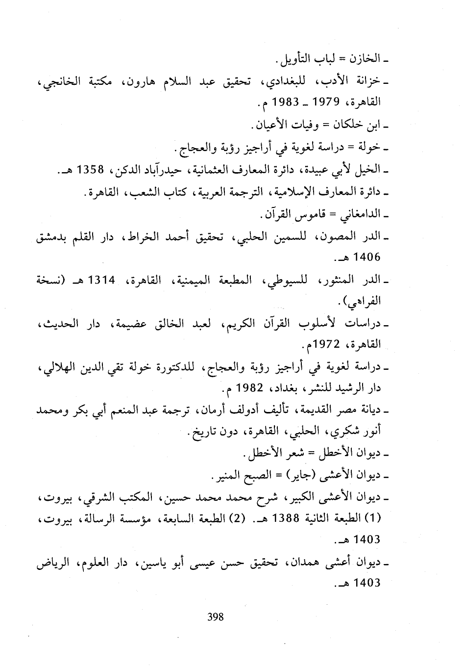 - خزانة الأدب، للبغدادي، تحقيق عبد السلام هارون، مكتبة الخانجي، القاهرة، 1979 - 1983 م.