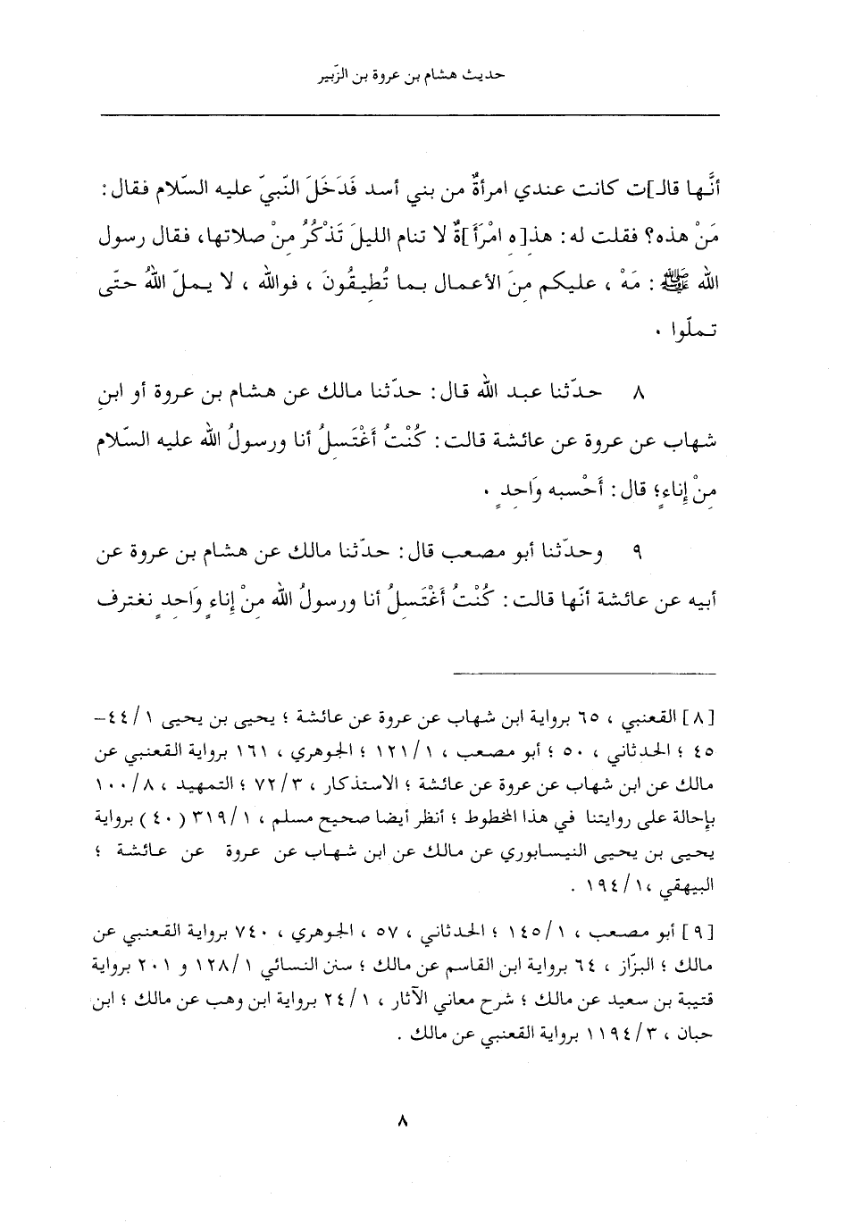 65- حدثنا أبو مصعب قال حدثني مالك عن أيوب بن أبي تميمة السختياني عن محمد بن سيرين عن أم عطية الأنصارية قالت: دخل علينا رسول الله عليه السلام حين توفيت ابنته فقال: اغسلنها ثلاثا او خمسا أو أكثر من ذلك إن رأيتن بماء وسدر واجعلن في الآخرة كافورا أو شيئا من كافور فإذا فرغتن فآذنني قالت: فلما فرغنا آذناه فأعطانا حقوه فقال: أشعرنها إياه يعني إزاره.