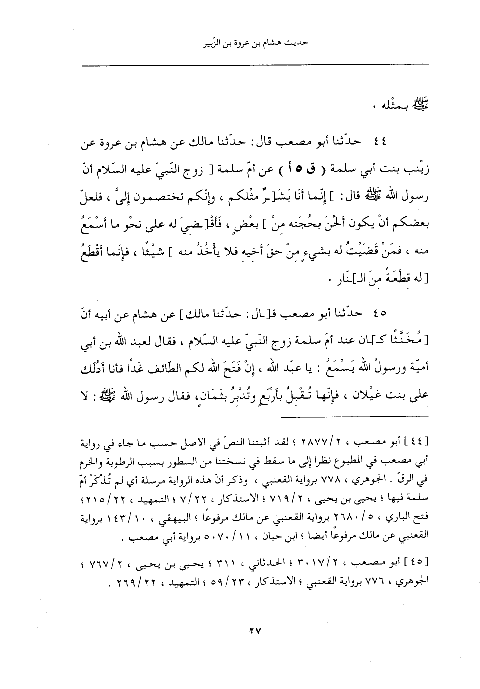 98- حدثنا عبد الله بن مسلمة عن مالك عن يحيى بن سعيد عن محمد بن يحيى بن حبان عن ابن محيرز أن رجلا من بني كنانة يدعى المخدجي سمع رجلا بالشأم يدعى أبا محمد يقول: إن الوتر واجب فقال -[60]- المخدجي فرحت إلى عبادة بن الصامت فاعترضت له وهو رائح إلى المسجد فأخبرته بالذي قال أبو محمد فقال عبادة: كذب أبو محمد سمعت رسول الله صلى الله عليه وسلم يقول: خمس صلوات كتبهن الله على العباد فمن جاء بهن لم يضيع منهن شيئا استخفافا بحقهن كان له عند الله عهد أن يدخله الجنة ومن لم يأت بهن فليس له عند الله عهد إن شاء عذبه فإن شاء أدخله الجنة.