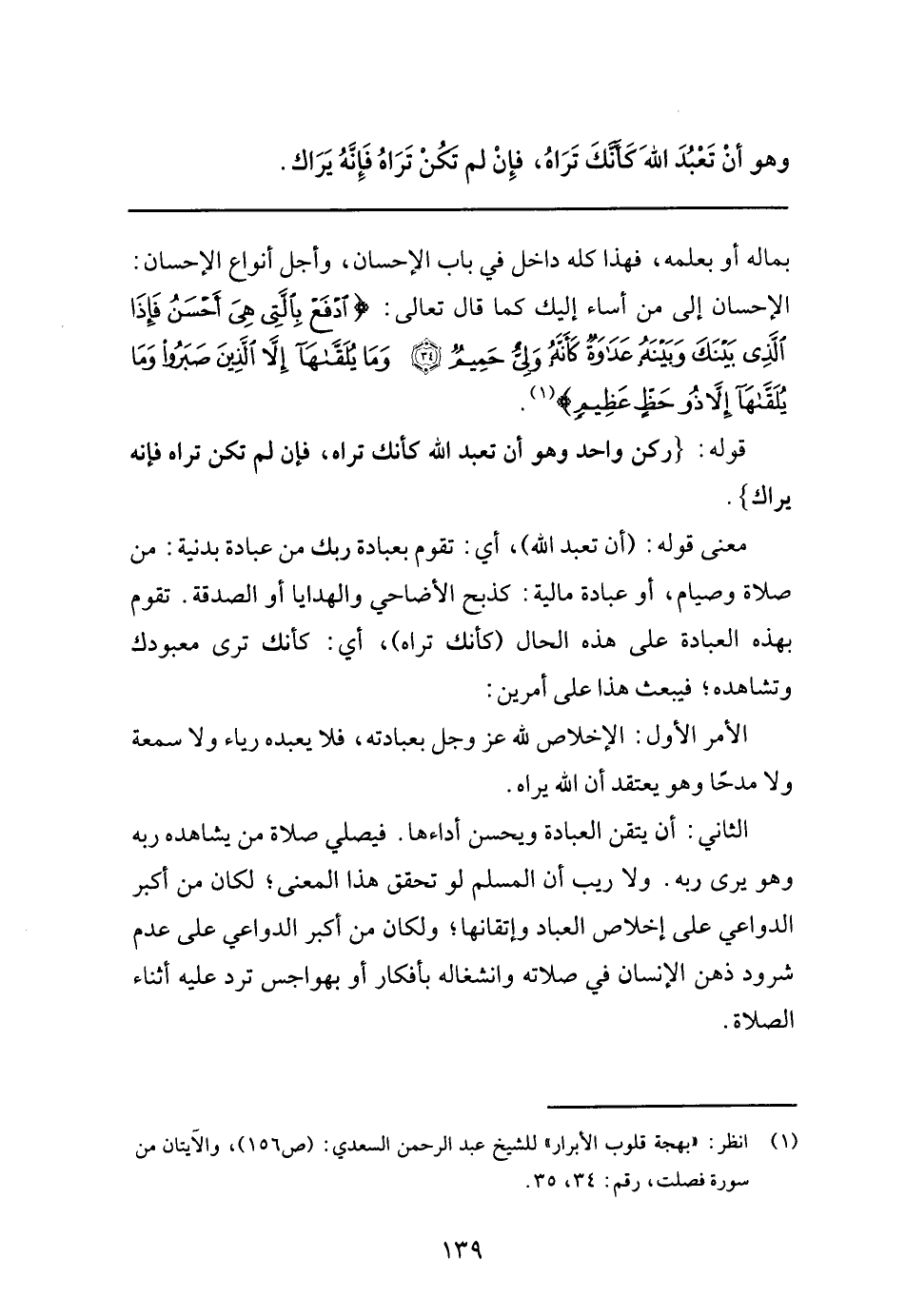 1 انظر: "بهجة قلوب الأبرار" للشيخ عبد الرحمن السعدي: "ص156"، والآيتان من سورة فصلت، رقم: 34، 35.