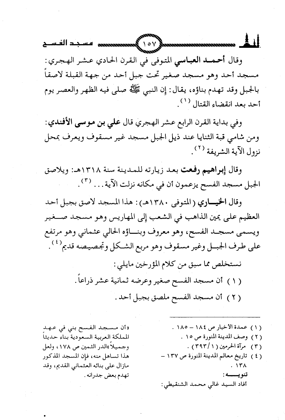 2 - أن مسجد الفسح ملص بجبل أحد.