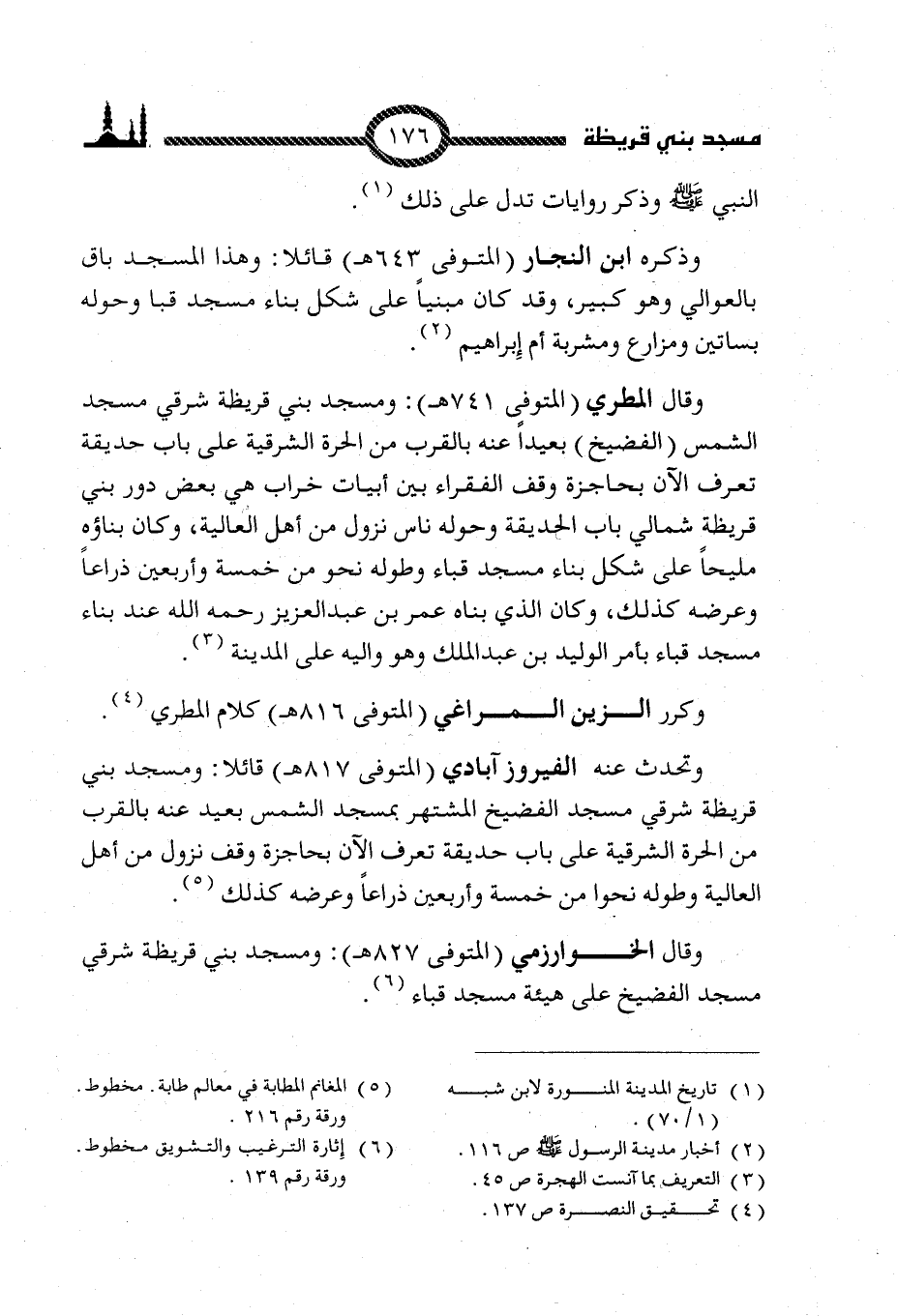 (2) أخبار مدينة الرسول صلى الله عليه وسلم ص 116.