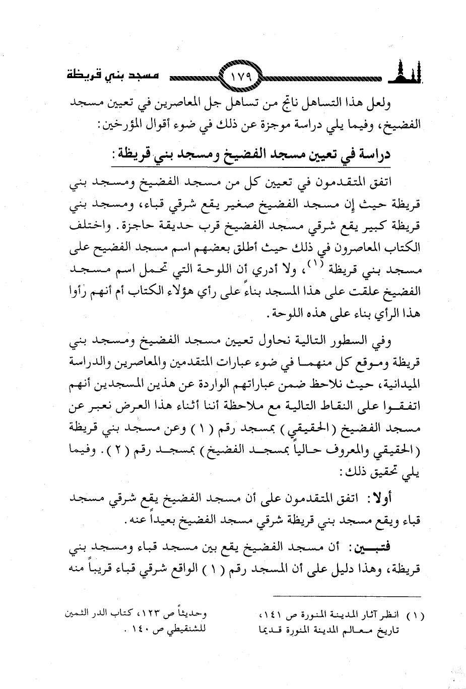 دراسة في تعيين مسجد الفضيخ ومسجد بني قريظة: