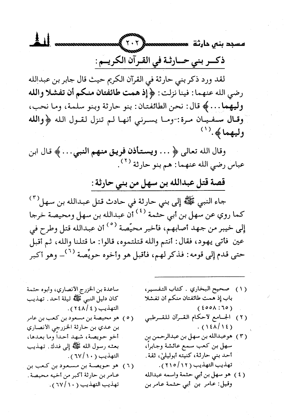 (4) هو سهل بن أبي حثمة واسمه عبدالله وقيل: عامر بني أبي حثمة عامر بن ساعدة بن الخرزج الأنصاري، وأبوه حثمة كان دليل النبي صلى الله عليه وسلم ليلة أحد، تهذيب التهذيب (4/ 248).