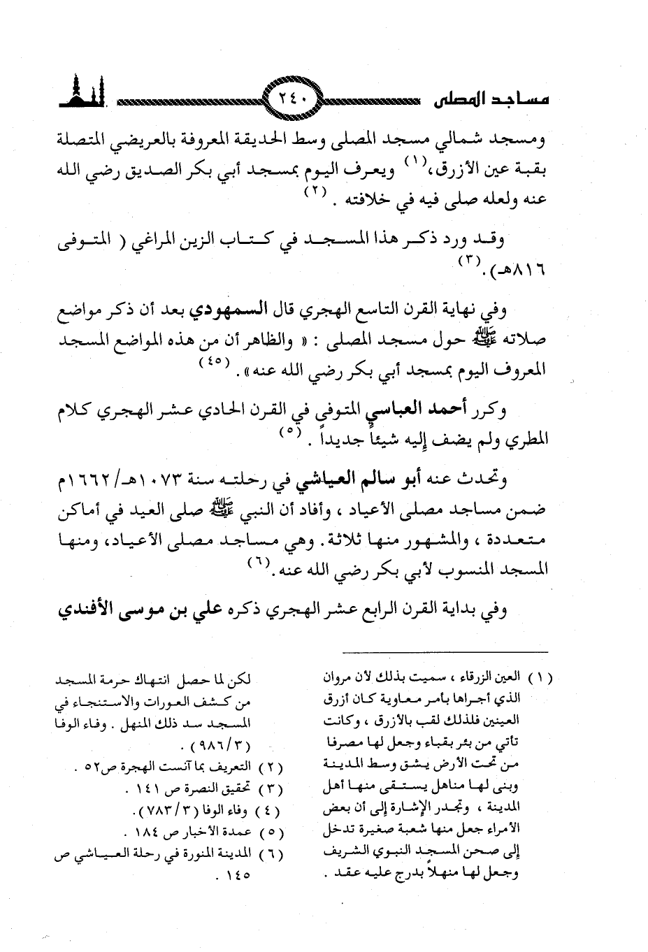 (6) المدينة المنورة في رحلة العياشي ص 145.