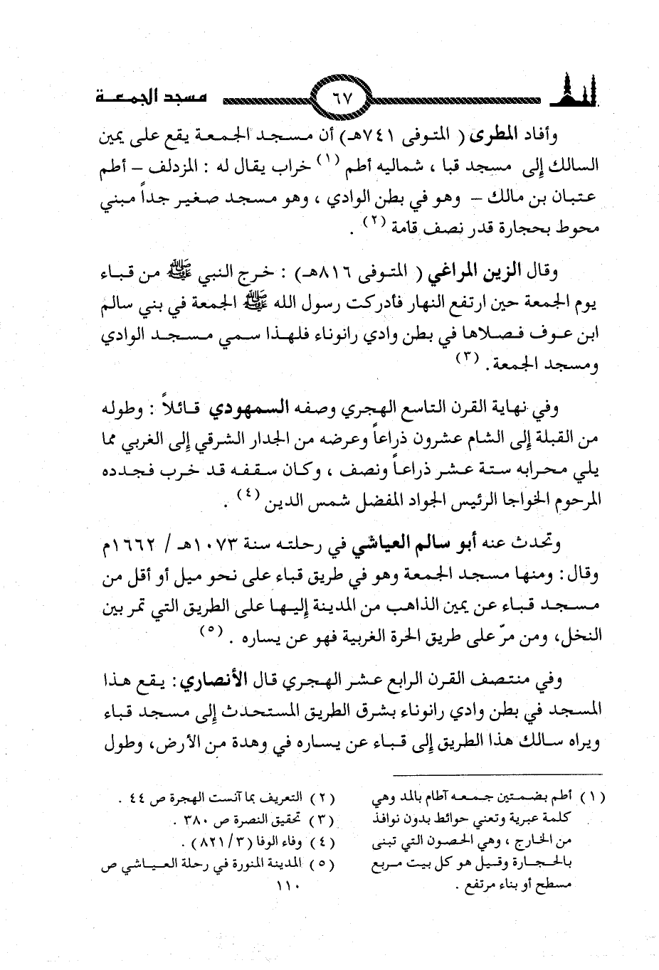 (5) المدينة المنورة في رحلة العياشي ص 110.