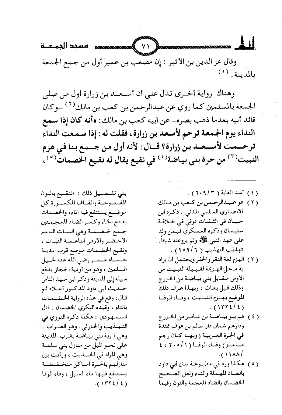 (4) هم بنو بياضة بن عامر من الخزرج ودراهم شمال دار سالم بن عوف ممتدة في الحرة الغربية (وبها كان رجم ماعز) وفاء الوفا (1/ 205، 4/ 1188).