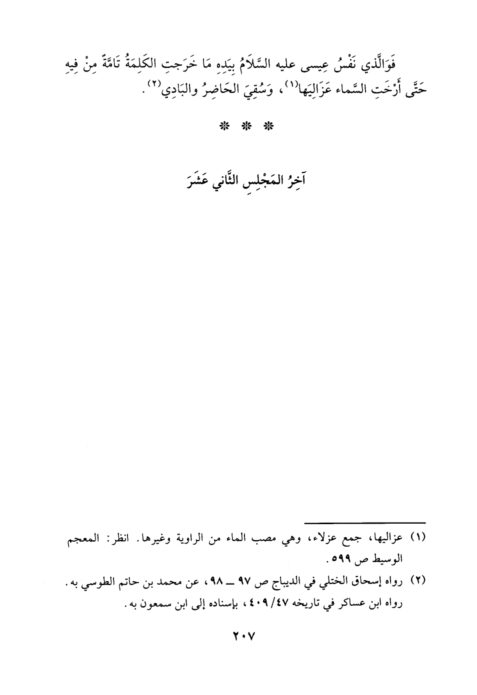 فَوَالَّذِي نَفْسُ عِيسَى عَلَيْهِ السَّلامُ بِيَدِهِ مَا خَرَجَتْ الْكَلِمَةُ تَامَّةً مِنْ فِيهِ حَتَّى أَرْخَتِ السَّمَاءُ عَزَالِيَهَا، وَسُقِيَ الْحَاضِرُ وَالْبَادِي وَالْبَادِي