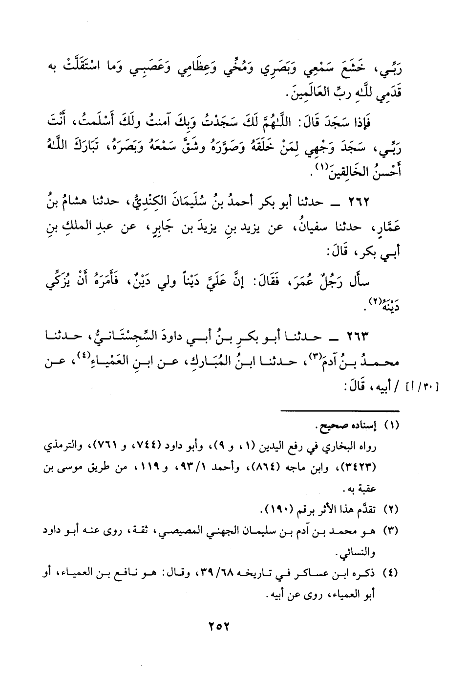 262 - حَدَّثَنَا أَبُو بَكْرٍ أَحْمَدُ بْنُ سُلَيْمَانَ الْكِنْدِيُّ، حَدَّثَنَا هِشَامُ بْنُ عَمَّارٍ، حَدَّثَنَا سُفْيَانُ، عَنْ يَزِيدَ بْنِ يَزِيدِ بْنِ جَابِرٍ، عَنْ عَبْدِ الْمَلِكِ بْنِ أَبِي بَكْرٍ، قَالَ: سَأَلَ رَجُلٌ عُمَرَ، فَقَالَ: " إِنَّ عَلَيَّ دَيْنًا وَلِي دَيْنٌ، فَأَمَرَهُ أَنْ يُزَكِّي دَيْنَهُ