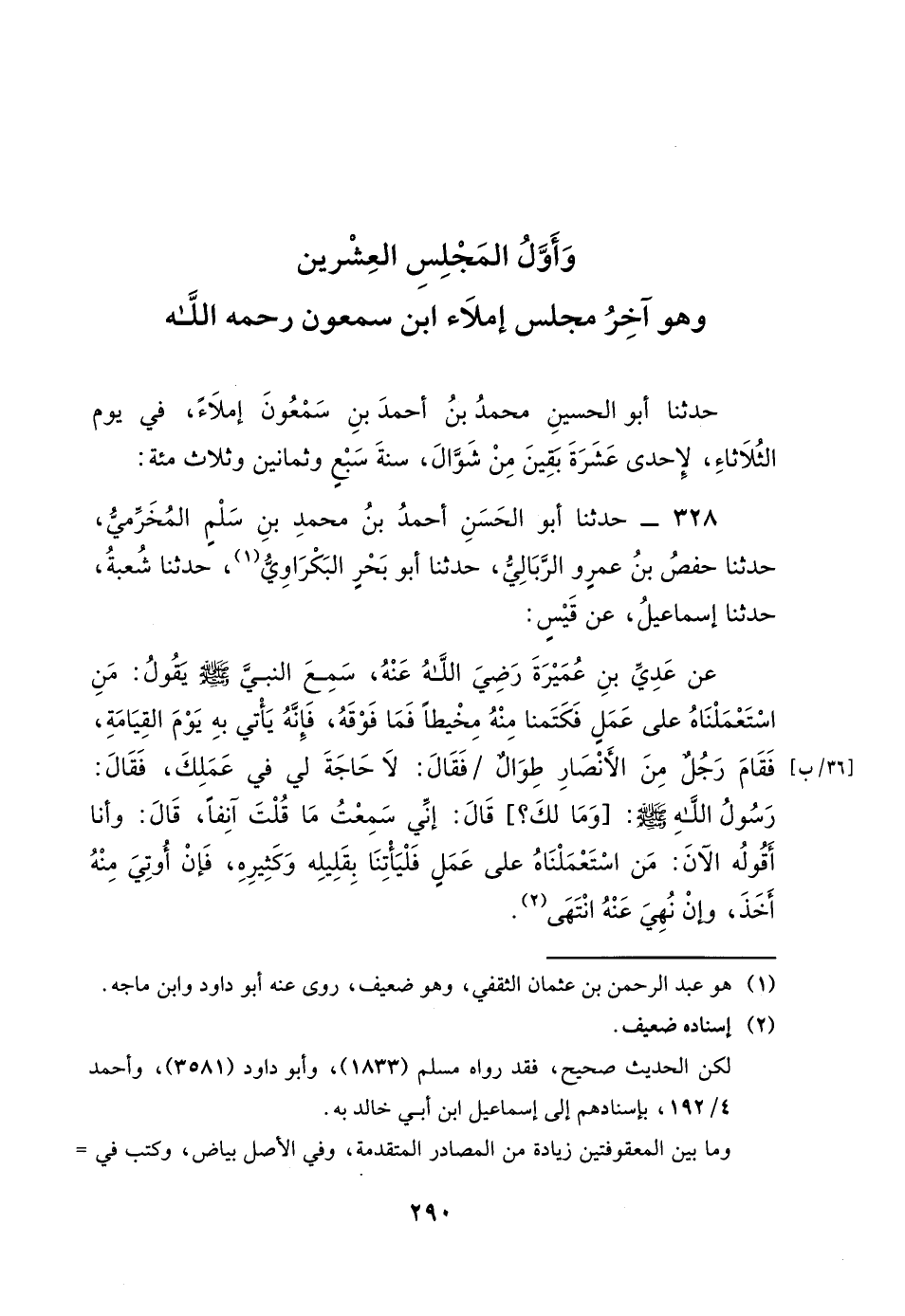 وَأَوَّلُ الْمَجْلِسِ الْعِشْرُونَ وَهُوَ آخِرُ مَجَالِسَ إِمْلاءً ابْنِ سَمْعُونَ رَحِمَهُ اللَّهُ