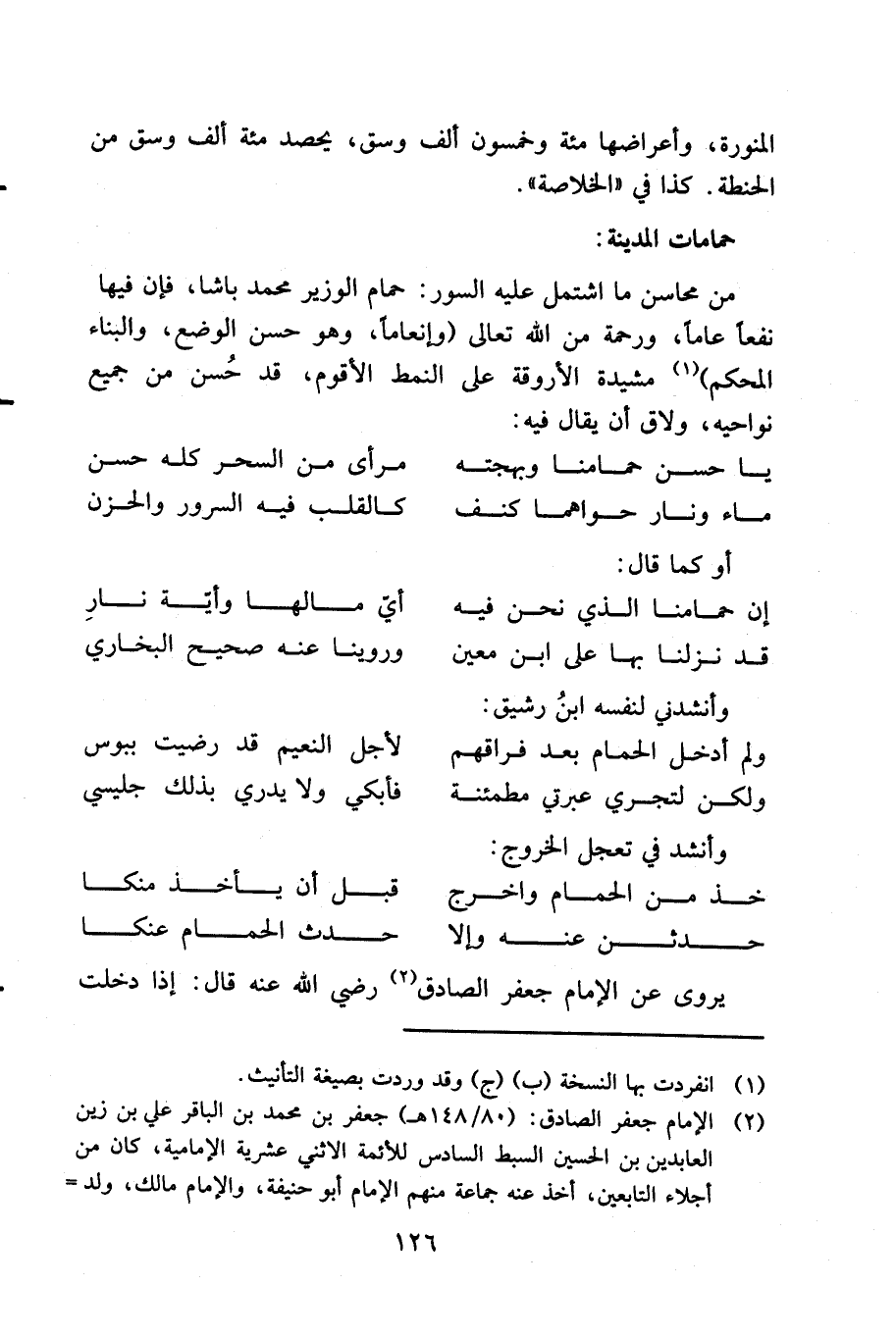 ... والجاري منه مغمور، أو في رصاص وطويل المكث، والمكبرت، والمجاور للرمل والتراب، وأصول الشجر، والحشائش رديء يعفن الأخلاط. وغدير ماء المطر إذا صفته الرياح جيد جداً ينفع المحرور، والمدور. والكبريتي يعقب الحكة، والجرب شرباً، وينفع منهما غسلاً، كمالح، وراجي. وماء الشب يقبض، ويمنع تولد القمل غسلاً، وماء الحديد سواء أخذ من معدنه، أو طفا فيه يقوي الأعضاء، ويحبس الإسهال، والدم، ويمنع الخفقان والزحير، وماء الذهب والفضة أعظم فيما ذكر خصوصاً بالطفى.