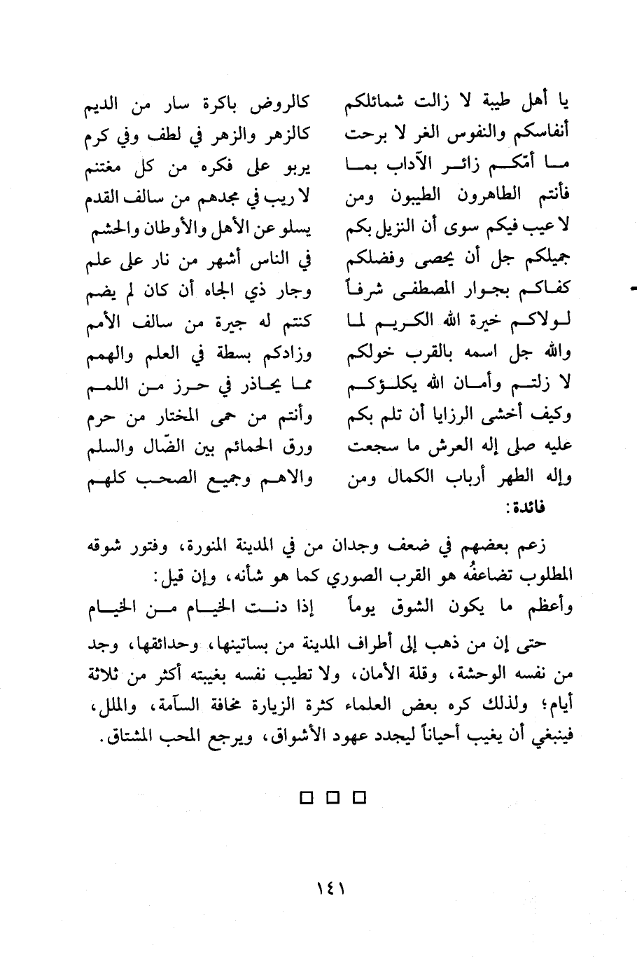 ... ومن محاسن البطحاء: وهي مجتمع السيول، فإن النفس تجد لها إليها ارتياحاً، وتكسب من قضائها أفراحاً. ومن أحسن ما قال: