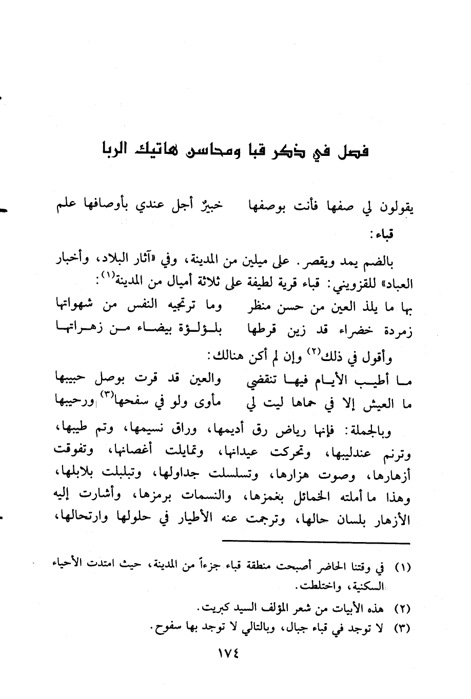 ... وقبر إبراهيم - ابن رسول الله عليه الصلاة والسلام - وعليه قبة مشيدة وقبور أزواج النبي - صلى الله تعالى عليه وآله وسلم - وهي قبور ظاهرة، ولا يعلم بتحقيق من فيها إلا قبر عائشة - رضي الله عنها - وقبر عقيل بن أبي طالب ومعه عبد الله بن جعفر الطيار وقبر صفية