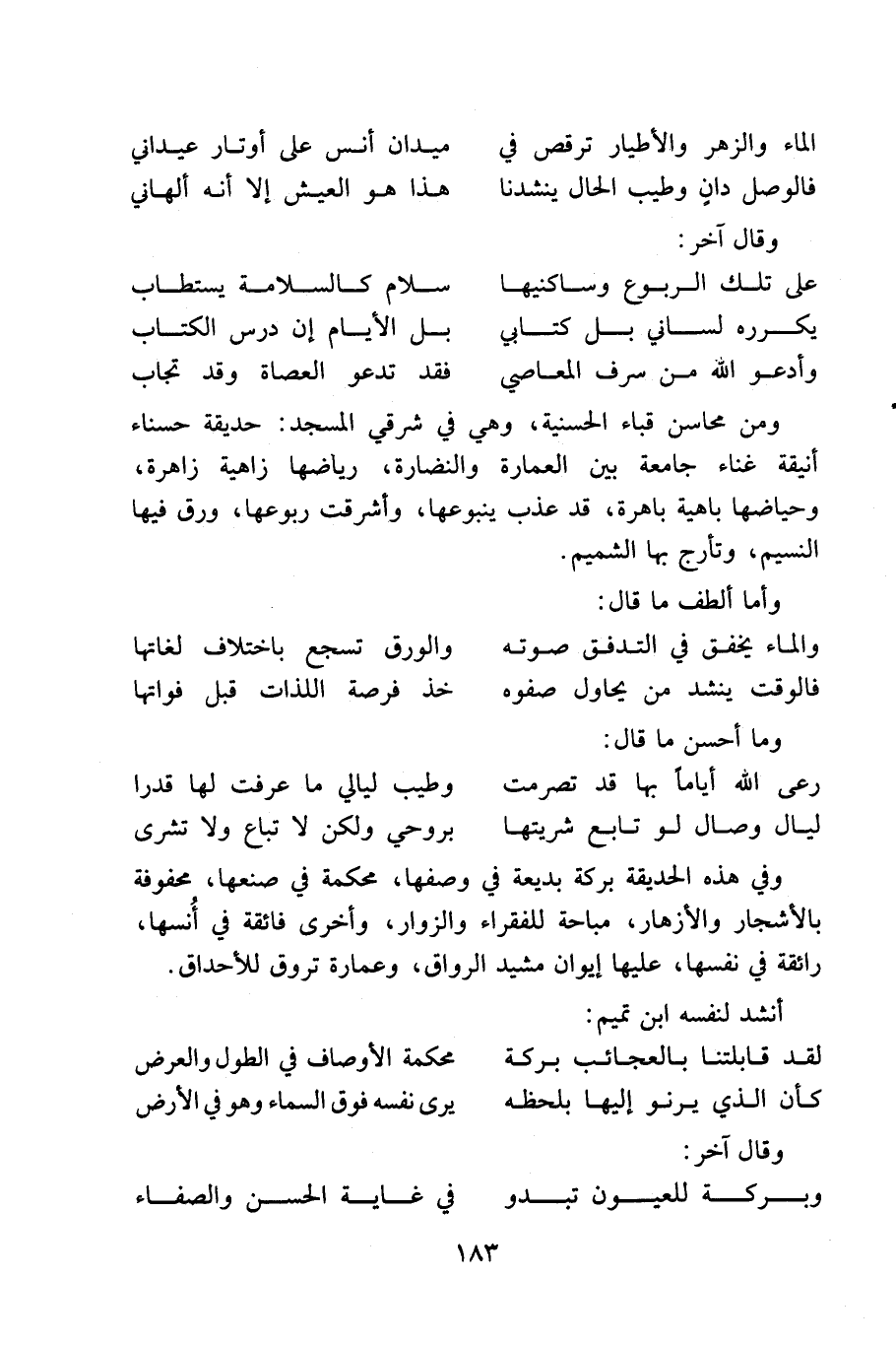 ومن محاسن المدينة الشريفة: أن أهلها لا يعتنون بعلم الفلسفة، والرياضة، ولا كتب الكلام والجدل، إلا ما شذ من الأعاجم الواردة إليها من الآفاق، وإنما همتهم في الشرعيات، وما يحتاج إليه من العربية، وكان يقال قل ما شئت في المتحلي بالفلسفة من الركاكة والسفسفة، وقل ما يحرس مهجته من لا يخرس لهجته. وكان يقال: العلوم ثلاثة: رئيسة، ونفيسة، وخسيسة. فأما الرئيسة فهي الشرعية كالفقه، والحديث، والتفسير، وما في معناها. وأما النفيسة فهي العربية، وهي ثلاثة عشر علماً كما في ((المنهل الصافي))، وأما الخسيسة فهي علوم الفلسفة، وقد فصلتها في كتاب ((النصر)) وأنشد في ذلك قولاً: