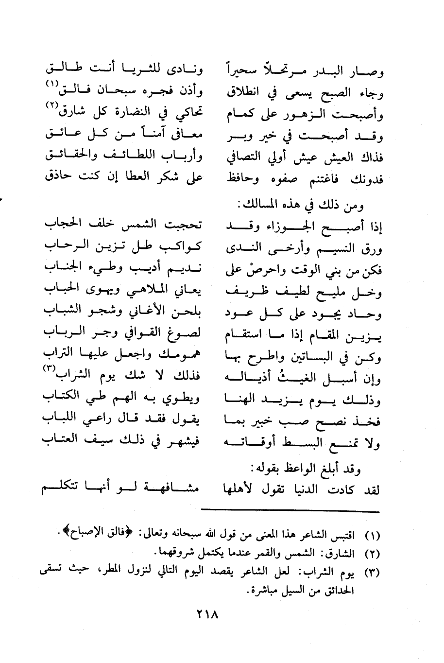 ... إلى أن أضاء الفجر أصبحت شاهداً ... بأنك مذكور وذكر وذاكر