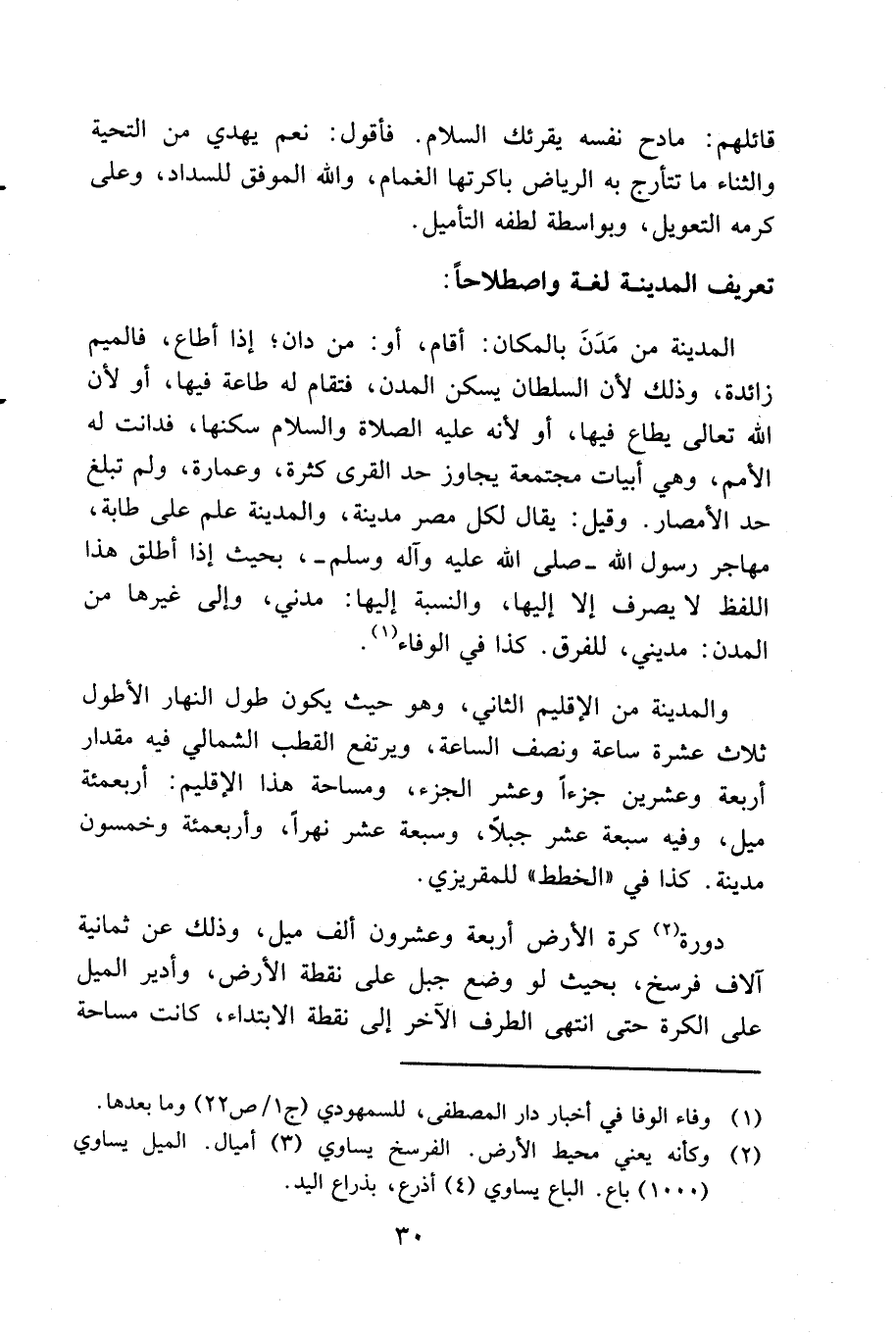 ... وبالجملة: فقد اشتملت المدينة الشريفة على محاسن تعشقها العقول، وأوانس ما بين القلب وهمومه تحول، ولطائف تعطر أندية الأفكار طيباً، وتعطي من تعّرض لنفحاتها من عرف الطيب نصيباً.