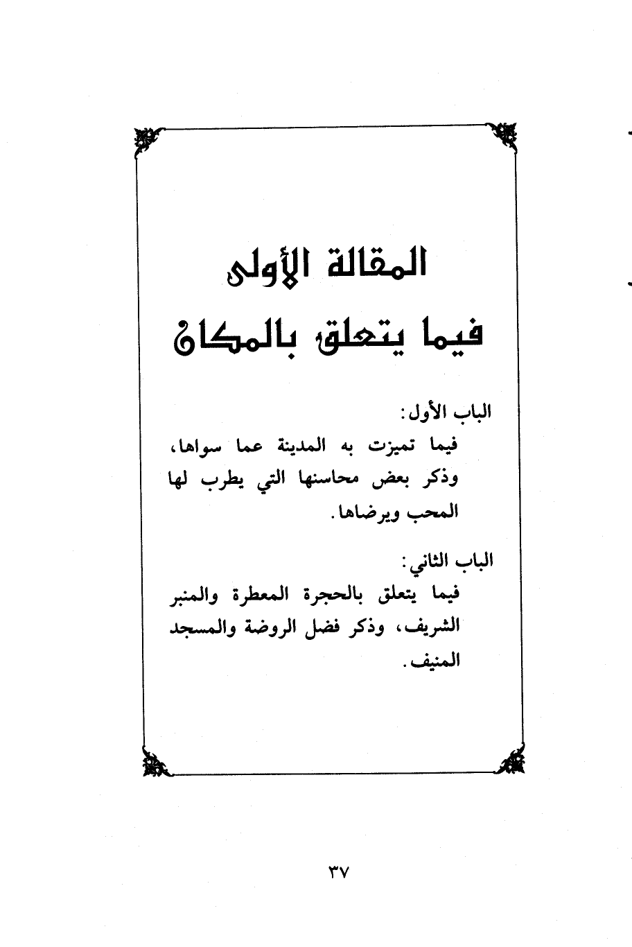 ... وحكى السهروردي: أن سليمان عليه السلام زار محل قبر محمد - صلى الله عليه وآله وسلم -، وأخبر أنه سيقبر فيه. واختصاص المدينة بذلك من بين قرى الحجاز لأنها باعتبار ذاتها، لا بما عرض لها من نحو حُمّاها، مع أنها نقلت إلى الجحفة أعذب أرض في تهامة، وأعدلها، وأهلها، وأكثرها ماء ونخيلاً، وأحسنها أهلاً ومقيلاً، سيما وفيها أخوال نبينا صلى الله عليه وعلى آله وسلم، وأنصاره، وغير ذلك من محاسنها، ومحاسنهم الجمة التي لا تكاد توجد في غيرها وغيرهم. وما أحسن ما قال: