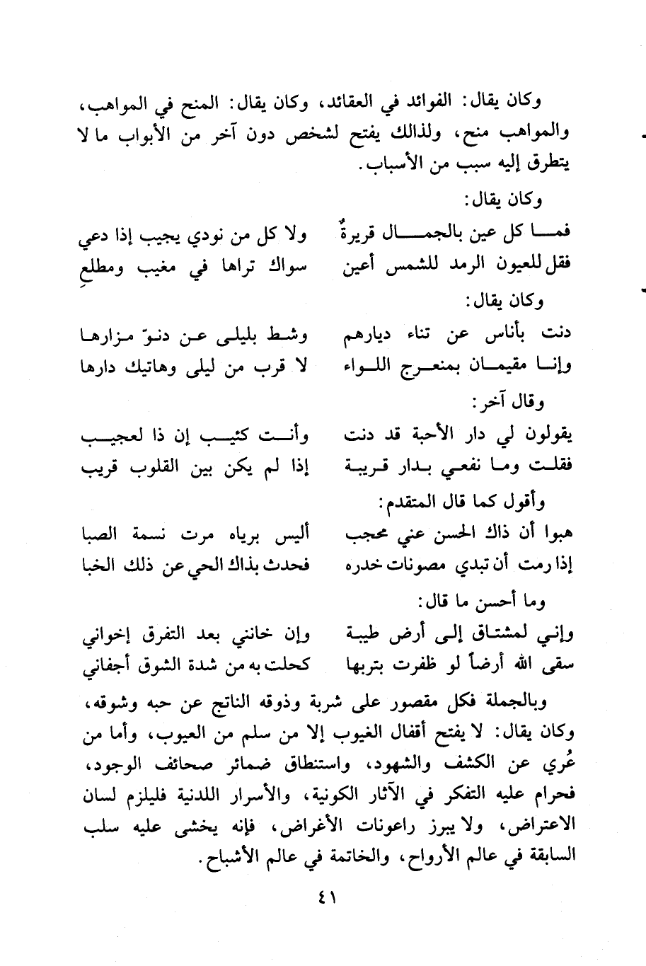... وعن الشيخ أبي السعود: لم يكن الشيخ إلا النبي - صلى الله عليه وآله وسلم- وإنه كان يصافحه عقب كل صلاة. قال الغزالي: أرباب القلوب في يقظتهم يشاهدون الملائكة، وأرواح الأنبياء يسمعون منهم أصواتاً، ويقتبسون منهم فوائد.