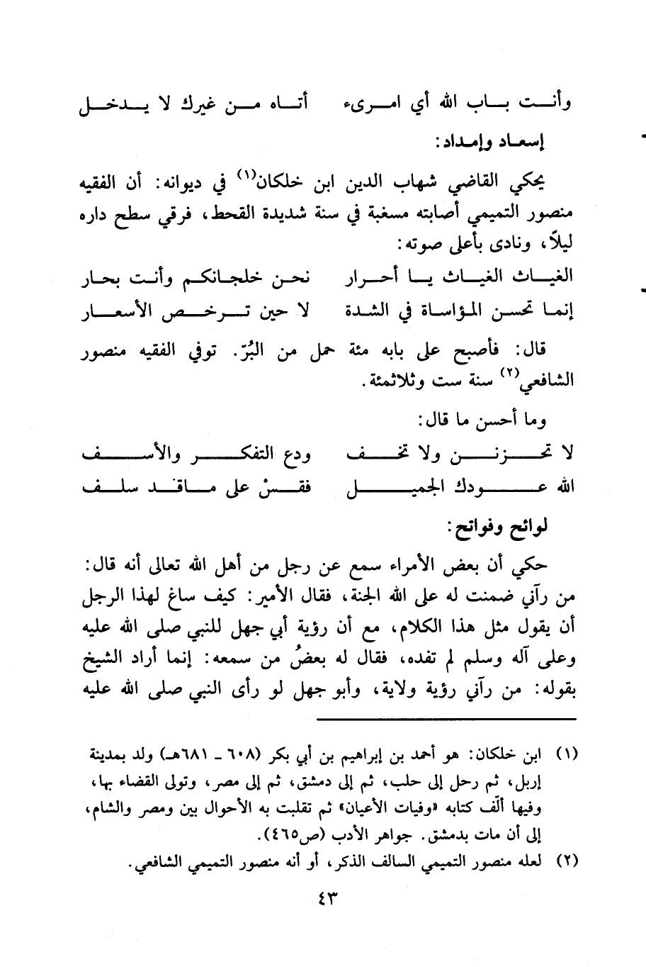 ... وعلى الخصوص ذلك السبيل المشتمل على الماء السلسبيل، فإنه عزّ، وسما وصفه على الواصف، وأبى إلا أن يتزايد ثوابه المتضاعف.