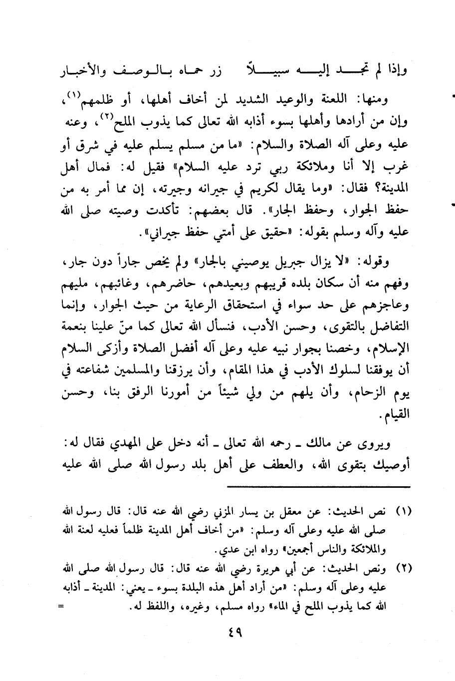 ... وعنه عليه وعلى آله الصلاة والسلام: ((اللهم من ظلم أهل المدينة وأخافهم، فأخفه، وعليه لعنة الله والملائكة والناس أجمعين، لا يقبل الله منه صرفاً ولا عدلاً)).