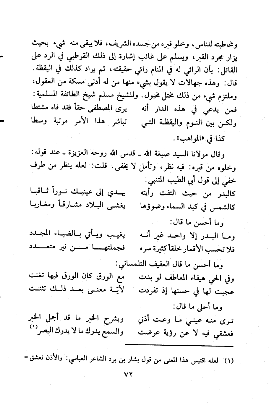 ... ومن محاسن المدينة، بل من رحمة الله تعالى وعنايته بها: كونها في ولاية صاحب الوقت والزمان، وصاحب العزة والأمان، والهمام الذي إذا نسب إلى النفوس كان العاشر في البشر أولي العقول فهو الحادي عشر شمس سماء الخلافة، وقمرها في الليل البهيم، ظل الله في أرضه القائم بإحياء سننه، وفرضه، ودينه القويم بحجة الله الواضحة، ودلالته الناصحة للخلق على التعميم، أمين الله تعالى على خلقه وخليفته، القائم بحقه بتقدير العزيز العليم، الجامع بين شجاعة الليث، وسماحة الغيث، والخلق العظيم، وخادم الحرمين الشريفين سلطان الروم واليمن والعراقيين، واسطة عقد آل عثمان السلطان بن السلطان بن السلطان المظفر، المنصور، المعان، المؤيد بالتوفيق والسداد، مولانا السلطان مراد خلد الله تعالى ملكه على تعاقب الآباد، وجعل الممالك في ملكه، وملك عقبه إلى يوم التناد ولا برحت أيام إقباله مسفرة، ووجوه الأنام بتحقيق المرام في أيامه مستبشرة، والله تعالى يجعل صدقاته الشريفة تسقى من داء الحرمان بكل فائدة، وصلاته المنيعة لكل من ضعف عن الوصول إلى استحقاقه عائدة، ما دامت الأيدي بالدعاء له مرفوعة، وقلوب أهل الإيمان على محبته مجموعة.