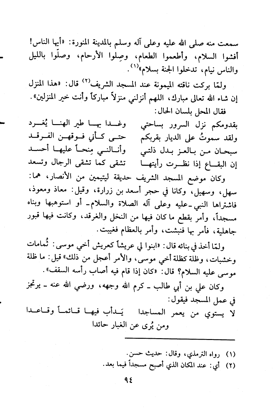 ومن محاسن النقا: زمزم فإنها حديقة ذات أشجار ونخيل، وعمارة تناحت في ساحتها الأطيار. قال في ((الوفاء)): بئر إهاب بصق فيها النبي - صلى الله تعالى عليه وآله وسلم - وهي بئر زمزم، ولم يزل أهل المدينة قديماً وحديثاً يتبركون بها، وينقلون إلى الآفاق من مائها. وفيه بئر فاطمة بنت الحسين بن علي بن أبي طالب - رضي الله تعالى عنهم وأرضاهم - احتفرتها لما خرجت من بيت جدتها فاطمة الزهراء - رضي الله تعالى عنها - وهي الآن من أحسن الحدائق الخضرة النضرة، ذوات الأشجار الأنيقة النضرة، وماؤها ليس بالعذب الخالص، وما أحسن ما قال:
